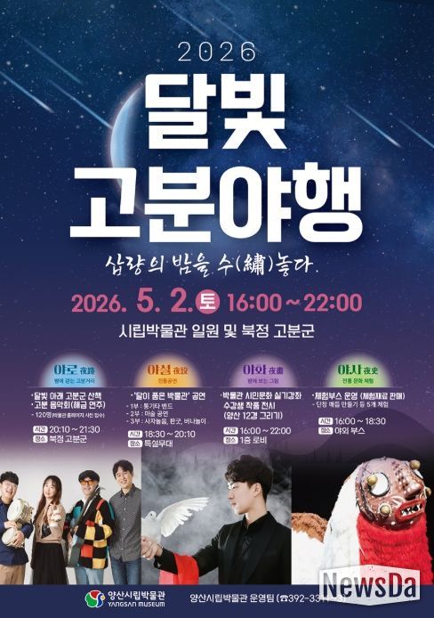 뉴스다 최광묵 기자 | 양산시립박물관(관장 신용철)은 5월 2일 박물관과 북정 고분군(사적 제93호) 일대에서 ‘2026 달빛 고분 야행(夜行)’을 개최한다고 밝혔다.