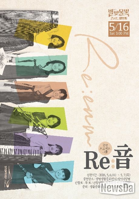 뉴스다 최광묵 기자 | 양평문화재단은 오는 5월 16일 오후 3시, 양평문화재단 2층 씨어터양평에서 ‘별빛물빛 콘서트 in 양평’ 5월 정기공연으로 국악 프로젝트 그룹 Re:音(리음)의 공연 ‘국악의 빛으로 물든 디즈니’를 선보인다.