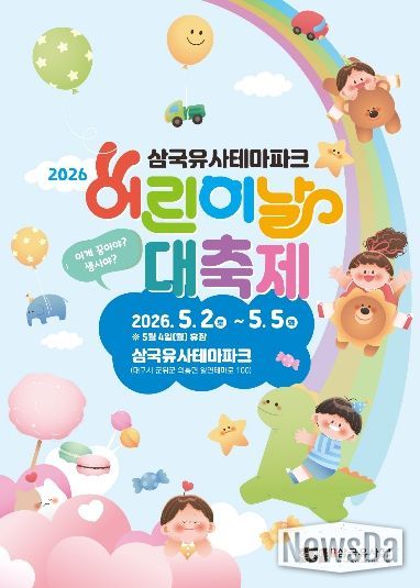 뉴스다 최광묵 기자 | 군위문화관광재단(대표이사 사공정한)은 다가오는 어린이날을 맞아 오는 5월 2일부터 5월 5일까지 3일간(5월 4일 월요일 휴장) 삼국유사테마파크에서‘2026 어린이날 대축제’를 개최한다.