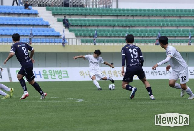 이날 경기에서 제천은 경기 초반부터 적극적인 압박과 조직적인 플레이로 주도권을 잡았다. 전반 45분 정혁이 환상적인 중거리 슈팅으로 선제골을 터뜨리며 앞서 나갔다.