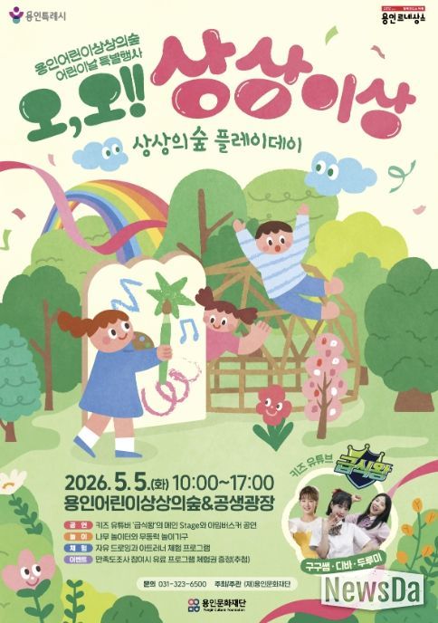 뉴스다 최광묵 기자 | 용인문화재단은 오는 5월 5일 어린이날을 맞아 용인어린이상상의숲에서 2026년 어린이날 특별행사 ‘오, 오! 상상이상’을 개최한다고 밝혔다.