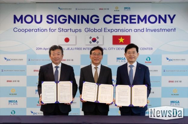 뉴스다 최광묵 기자 | 제주국제자유도시개발센터는 20일 JDC 본사에서 도쿄 키라보시 금융그룹, BNK 금융그룹과 제주첨단과학기술단지 및 Route330에 입주해 있는 기업의 글로벌 진출과 투자 연계를 위한 업무협약을 체결했다고 밝혔다.