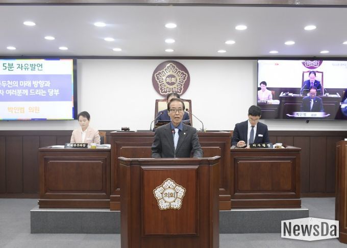 뉴스다 최광묵 기자 | 동두천시의회 박인범 의원(더불어민주당, 나선거구)이 제345회 임시회 폐회식에서 시의원으로서의 마지막 5분 자유발언에 나섰다. 제1대, 제8대, 제9대 동두천시의원과 제8대 경기도의회 의원을 거친 박 의원은 이번 임기를 끝으로 의정활동을 마무리하며, 공직자들에게 '시민이 찾아오는 동두천'을 향한 당부의 메시지를 전했다.