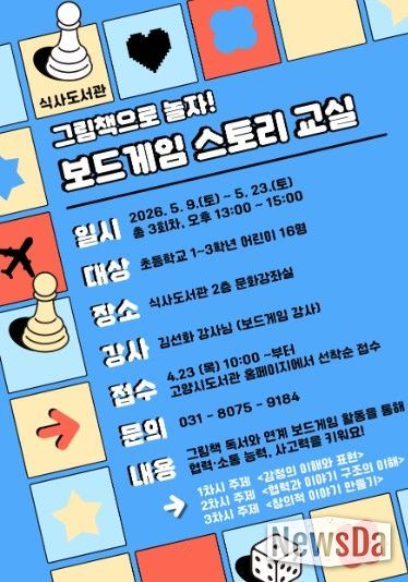 뉴스다 최광묵 기자 | 고양특례시 식사도서관이 오는 5월 9일부터 공공도서관 독서문화 프로그램 ‘그림책으로 놀자! 보드게임 스토리 교실’을 운영한다.
