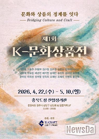 뉴스다 최광묵 기자 | K-공예문화관광협회(KCTA)가 주최주관하는 제1회 K-문화상품전이 오는 4월 22일부터 5월 10일까지 청주에서 열린다.