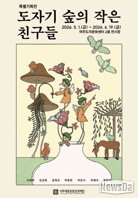 뉴스다 최광묵 기자 | 여주세종문화관광재단은 오는 5월 1일부터 6월 19일까지 여주도자문화센터 2층 1전시실에서 2026년 상반기 특별기획전 '도자기 숲의 작은 친구들'을 개최한다고 밝혔다.