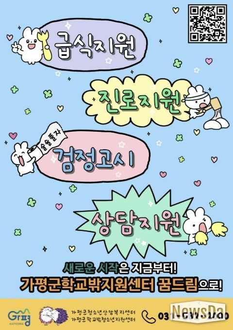뉴스다 최광묵 기자 | 가평군학교밖청소년지원센터 학교 밖 청소년들의 건강한 성장과 자립을 돕기 위해 다양한 맞춤형 프로그램 참여자를 모집한다.