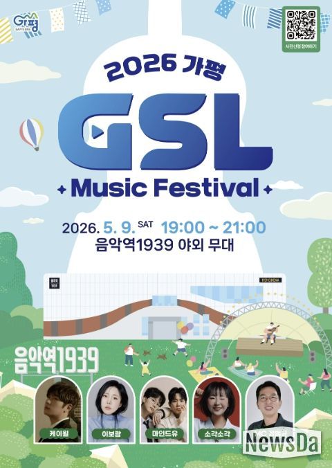뉴스다 최광묵 기자 | 가평군이 오는 5월 9일 케이윌·이보람 등이 전하는 ‘2026 가평 토요 라이브(G-SL) 5월 스프링 콘서트(뮤직 페스티벌)’를 개최한다.