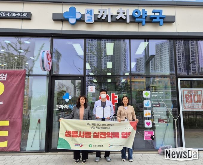 뉴스다 최광묵 기자 | 오산시정신건강복지센터 부설 자살예방센터는 지역사회 기반 생명존중 문화 확산과 자살예방 체계 강화를 위해 지난 20일과 21일 이틀간 관내 약국 4곳과 ‘생명사랑약국’ 업무협약을 체결했다고 밝혔다.