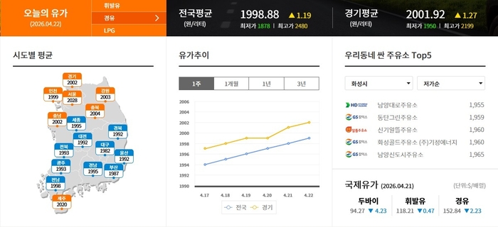 ▲화성시 휘발류 제일 싼 주유소1968원 오일필드(주)남양지점