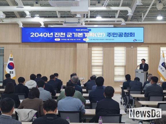 뉴스다 최광묵 기자 | 충북 진천군은 지속가능한 미래 발전 방향 모색과 주민의 목소리 청취를 위해 진천읍 복합커뮤니티센터에서 2040년 진천 군 기본계획(안) 공청회를 개최했다고 22일 밝혔다.