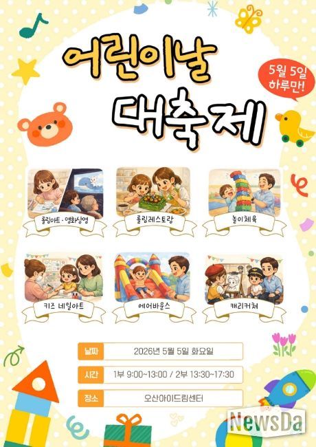뉴스다 최광묵 기자 | 오산시가 운영하는 오산아이드림센터가 어린이날을 맞아 온 가족이 함께 즐길 수 있는 특별 체험행사를 마련한다.