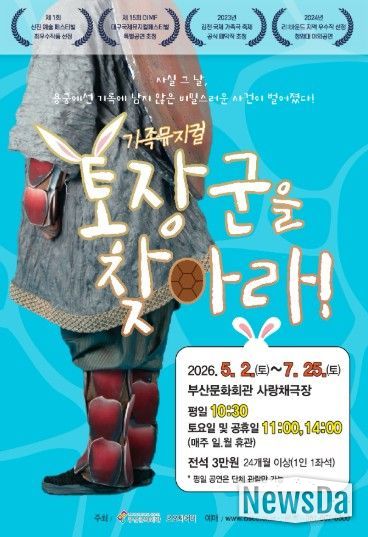 뉴스다 최광묵 기자 | (재)부산문화회관은 가족 뮤지컬 '토장군을 찾아라'를 오는 5월 2일부터 7월 25일까지 부산문화회관 사랑채극장에 올린다.