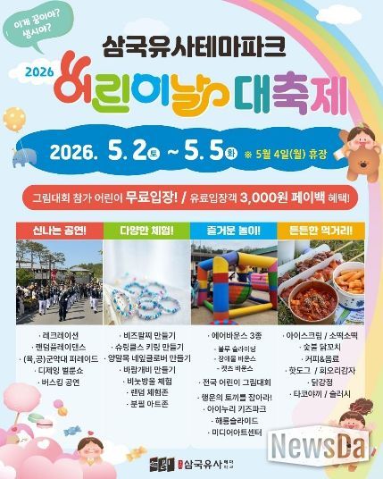 뉴스다 최광묵 기자 | 군위문화관광재단이 다가오는‘2026 어린이날 대축제’를 더욱 알차게 즐길 수 있는 상세 일정과 장소별 프로그램을 전격 공개했다.