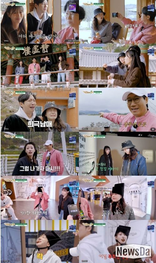 멤버들의 투닥투닥 케미는 장소를 가리지 않았다. 경천대 벚꽃 명소에서 이미주가 사랑을 쟁취하려 ‘벚꽃잎 추격자’로 변신한 사이, 전소민과 이상엽은 벚꽃잎을 눈물처럼 붙이고 ‘메소드 연기’를 펼쳤다. 그 모습에 이미주가 “아 그거 하지 말지”라며 정색하는 모습은 현장의 웃음 버튼을 제대로 눌렀다.