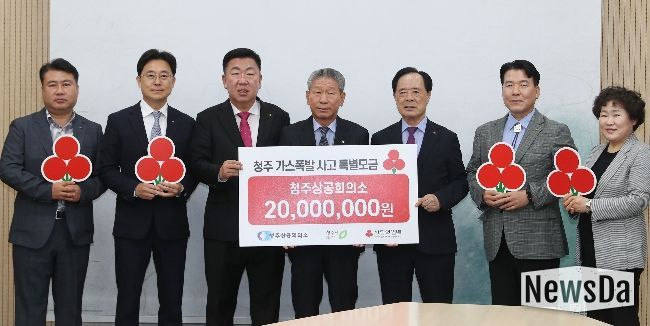 청주상공회의소는 성금 2천만원을 청주시에 전달했다. 차태환 청주상공회의소 회장은 “예기치 못한 사고로 어려움을 겪고 있는 이웃들에게 조금이나마 힘이 되기를 바란다”며 “앞으로도 회원들과 함께 지역사회 소외계층과 재난 피해 이웃을 위한 나눔 활동을 지속적으로 이어가겠다”고 말했다.