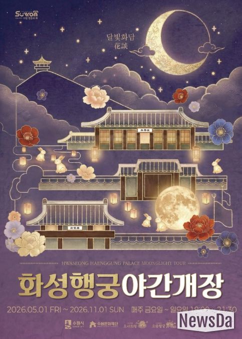 뉴스다 최광묵 기자 | 화성행궁 야간개장 ‘달빛화담, 花談’이 5월 1일 시작된다. 11월 1일까지 매주 금·토·일요일에는 저녁 9시 30분까지 화성행궁을 관람할 수 있다.