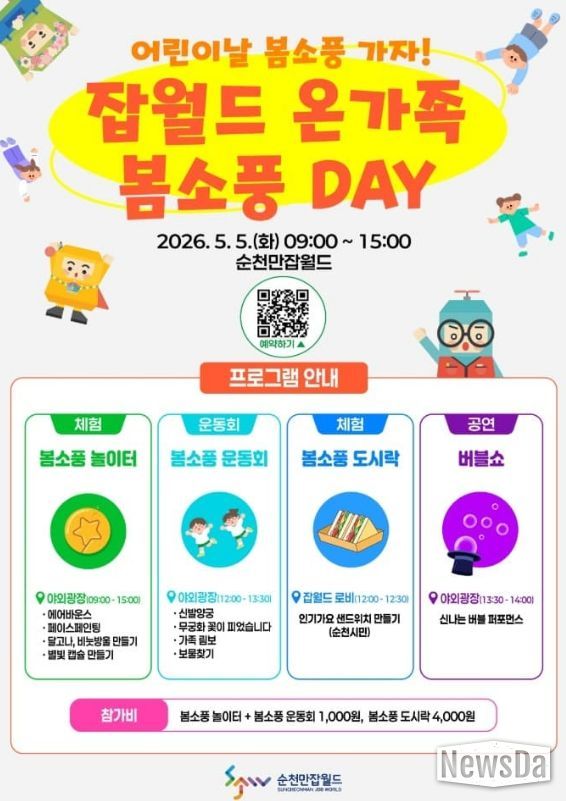 뉴스다 최광묵 기자 | 순천시는 오는 어린이날을 맞아 순천만잡월드에서 ‘잡월드 온가족 봄소풍 DAY’이벤트를 개최한다고 밝혔다.