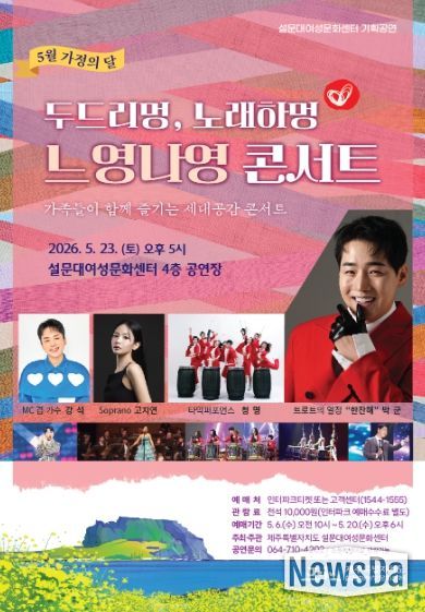 현은정 설문대여성문화센터 소장은 “가정의 달을 맞아 가족이 함께 즐길 수 있는 공연을 마련했다”며 “도민들이 문화예술을 통해 일상에 활력을 얻는 시간이 되길 바란다”고 말했다.