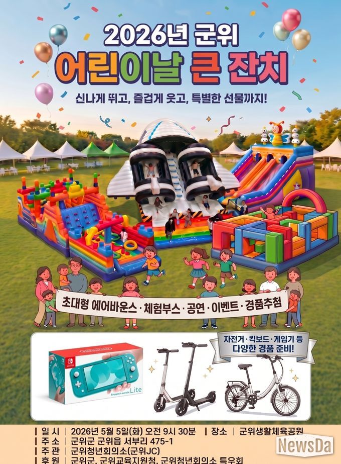 뉴스다 최광묵 기자 | 군위군은 오는 5월 어린이주간을 맞아 제104회 어린이날을 기념하는 '2026 군위 어린이날 큰 잔치'를 개최한다고 밝혔다.