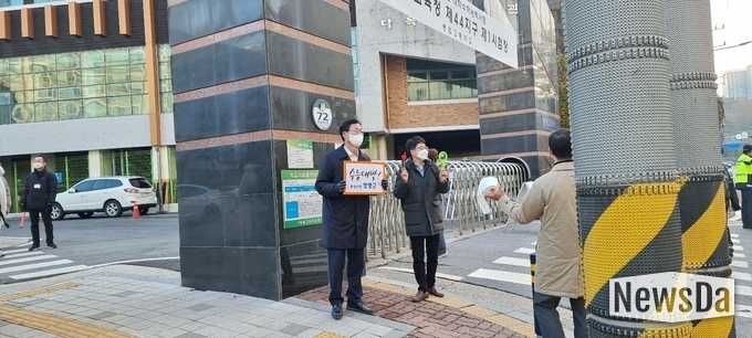 11월 17일 오전 정명근 화성시장이 화성 병점고등학교 제1 시험장을 깜짝 방문해 수능시험 입시생들에게 “수능 대박” 푯말을 들고 격려했다.