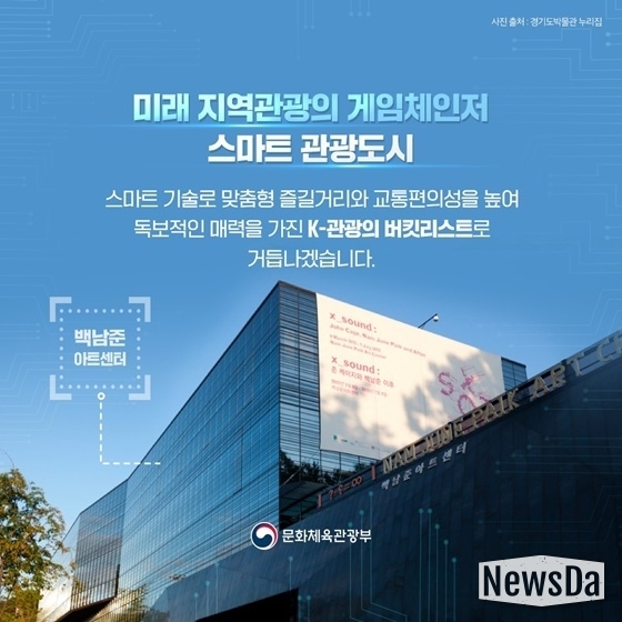 스마트 관광도시 조성사업은 기술과 관광 요소를 접목해 독창적이고 매력적인 관광자원을 확충하고 누구나 편리하게 관광 서비스를 이용할 수 있도록 지역의 관광지를 결합하고 발전시키는 사업입니다.