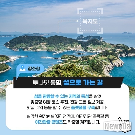 섬을 관광할 수 있는 지역의 특성을 살려 맞춤형 여행 코스 추천, 관광·교통 정보 제공, 맛집 예약 등을 할 수 있는 플랫폼을 구축합니다.