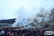 뉴스다 최광묵 기자 | 창원특례시는 지난 3일 마산합포구 진동면 동촌 냇가에서 ‘제30회 진동큰줄다리기 및 달맞이 행사'가 성황리에 개최됐다고 밝혔다. 진동민속문화보존회(회장 이동인)가 주관한 이번 행사는 병오년 새해를 맞아 시민들의 무사안녕과 풍요를 기원하고, 전통문화 계승과 주민 화합을 도모하기 위해 마련됐다. 이날 행사에는 김만기 문화관광체육국장, 시·도의원 및 시민 1,500여 명이 참석했다. 오후 2시 식전 공연을 시작으로 기원 제례와 큰줄다리기가 이어졌으며, 참가자들은 동·서부로 나뉘어 거대한 줄을 힘껏 당기며 장관을 연출했다. 이후 일몰에 맞춰, 높게 솟은 달집을 태우며 액운을 물리치고 각자의 소망을 기원하는 시간을 가졌다. 김만기 문화관광체육국장은 축사를 통해 "오늘 행사로 정월대보름의 의미를 되새기고, 달집태우기를 통해 모든 근심과 걱정을 털어내어 행복과 풍요가 가득한 병오년 한 해가 되기를 바란다."고 전했다.