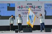 뉴스다 류대현 기자 | 세종시체육회는 2025년 9월 27일 세종시민운동장 보조경기장 특설무대에서 '제14회 세종시민체육대회' 개회식을 성황리에 개최했다. 이번 대회는 최민호 세종시장, 임채성 시의회 의장, 강준현, 김종민 국회의원을 비롯한 각 기관 내빈과 회원종목단체장, 24개읍면동체육회장, 선수단 등 총 2,800여 명이 참석한 가운데 진행됐다. 세종시체육회가 주최하고 읍면동체육회, 회원종목단체가 주관, 세종시가 후원하는 이번 체육대회는 시민들이 참여하는 지역 최대 규모의 생활체육 축제로 정식 11개 종목과 시범 3개 종목에서 각 읍면동을 대표하는 선수단이 기량을 겨루었다. 개회식은 벨리댄스, 체조, 스트레칭 등 식전공연을 시작으로 ▲24개 읍면동 선수단 입장 퍼포먼스 ▲중국 샨시성 리듬체조 대표단 특별공연 ▲내빈 축사 ▲선수·심판 대표 선서 ▲전국체전 단기 수여 ▲성화 점화 퍼포먼스 ▲가수 허나래 축하공연 등 다채로운 프로그램으로 구성됐다. 특히, 세종시와 중국 샨시성 간 우호도시 체결 10주년을 기념한 국제 교류 공연이 진행되어 행사의 국제적 의미를 더하며 큰 주목을 받았다.