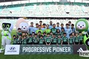 뉴스다 류대현 기자 | 정성주 김제시장이 전북현대와 손잡고 ‘김제파트너데이’를 통해 지평선축제와 김제쌀을 홍보했다. 22일 김제시에 따르면 지난 20일 오후 4시 30분 전주월드컵경기장에서 김천상무와 전북현대 30라운드 경기에 참가해 ‘김제파트너데이’를 진행했다. 시는 이날 홍보부스를 마련해 오는 10월 8일부터 12일까지 진행되는 ‘김제지평선축제’를 알리고 이와 함께 ‘김제지평선쌀’, ‘쌀 마스크팩’, ‘지평선축제 체험권’ 등을 팬들에게 선물했다. 홍보부스에서 김제지평선축제 SNS(유튜브, 인스타그램) 구독 이벤트와 김제시 SNS 구독이벤트, 고향사랑기부로 이날 경기를 찾은 2만여 관중들에게 호응을 얻었다. 특히, 이날 시는 20kg 쌀 20포를 전북현대 선수단에 기부했으며 전북현대는 기증받은 쌀 20포를 김제 지역 노인의료복지시설(4곳)에 다시 기증했다. 정 시장은 “우승을 향해 달려가는 전북현대가 김제시와 함께 김제파트너데이를 진행하게돼 김제에서 열리는 김제지평선축제 역시 전북도민과 전국민에게 사랑을 받는 축제가 될 것으로 기대된다”면서 “특히, 김제지평선축제가 추석시기에 진행