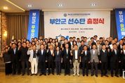 뉴스다 류대현 기자 | 부안군체육회는 지난 3일 K컨벤션웨딩홀에서 내ㆍ외빈과 체육관계자 등 200여명이 참석한 가운데 “제62회 전북특별자치도민체육대회” 선수단 출정식을 개최했다. 부안군에서 35개종목 800여명의 선수단이 참가하며 올해는 종합6위의 성적을 목표로 하고 있다. 권익현 부안군수와 박병래 부안군의회의장은 축사에서 “폭염속에서도 부안군의 명예를 높이기 위해 피나는 훈련을 한 선수들의 노고를 치하하고, 우수한 성적을 기대한다”며 힘찬응원을 전했다. 선수단장인 전동일 체육회장은 “선수와 임원 모두가 부안군을 대표한다는 자긍심을 가지고 대회에 참가하는 만큼, 최선을 다해 좋은 결과로 부안군의 위상을 높이겠다”며 결의를 다졌다. 한편, 제62회 전북특별자치도민체육대회는 12일부터 14일까지 고창군 일원에서 열린다