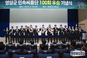 뉴스다 류대현 기자 | 영암군이 28일 군청에서 영암군민, 영암민속씨름단후원회원 등 300여 명이 참석한 가운데 ‘영암군민속씨름단 통산 100회 우승 달성 기념식’을 개최했다. 이날 기념식은 2017년 창단한 영암군민속씨름단이 이달 1~7일 충북 영동군에서 열린 영동세계국악엑스포장사 씨름대회 단체전 우승으로 통산 100승의 금자탑을 쌓은 성과를 축하하는 자리. 통산 100승은 대한민국 민속씨름리그 사상 최초의 성적이고, 지역 연고 스포츠단 역사에서도 굵은 글씨로 기록될 업적으로 평가되고 있다. 우승희 영암군수는 “‘기의 고장 영암’을 대표하는 영암군민속씨름단이 통산 100승으로 영암군민과 향우들에게 큰 자긍심을 심어줬다. 선수단의 땀과 영암군민의 응원과 후원이 만들어낸 쾌거다. 영암군민속씨름단이 영암을 대표하고, 대한민국을 대표하는 브랜드로 성장할 수 있도록 함께 힘을 모아가자”고 말했다. 기념식에서 참석자들은 영암군민속씨름단의 100회 우승 영상 상영, 기념패·꽃다발 전달 등으로 영광의 역사를 돌아봤다. 나아가 김기태 감독, 최정만 주장 등 선수단의 비전과