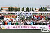 뉴스다 류대현 기자 | 인천 동구는 지난 27일 제30회 동구 구민생활체육대회를 성황리에 개최했다고 밝혔다. 대회는 내년 출범하는 제물포구로의 개편 전 동구라는 이름으로 개최되는 마지막 체육대회로 그 의미를 더했다. 이번 대회는 생활체육 교류를 통한 주민 소통과 화합을 위해 개최됐다. 김찬진 동구청장과 유옥분 동구의회 의장을 비롯해 관내 11개 동 2천여 명의 주민이 참여했다. 식전 행사로 송4자걸즈, 조선소다팝 등 지역 댄스팀 공연으로 행사 분위기를 고조시켰다. 이어 송현1,2동 풍물단 공연과 함께 화려한 입장식을 가졌으며 11개 동 추진위원장들의 구민의 노래 제창과 릴레이 성화봉송을 시작으로 이번 체육대회의 본격적인 막이 올랐다. 동별 대항으로 공굴리기, 색판뒤집기, 볼품농구 등 다채로운 경기가 진행됐으며, 각 동별 열띤 응원이 펼쳐진 가운데 소통화합상 송림6동, 3등 만석동, 준우승 송현1,2동, 최우수상의 영예는 송림3·5동이 차지했다. 김찬진 동구청장은 “동구에서 개최되는 마지막 구민생활 체육대회로 많은 아쉬움을 주민 모두가 가지고 있을 것이라 생각한다”며 “2026년 7월 동구와 중구