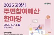 뉴스다 최광묵 기자 | 고양특례시는 오는 10월 14일 오후 3시 30분, 일산호수공원 고양꽃전시관(북카페)에서 ‘2025년 고양특례시 주민참여예산 한마당’을 개최한다고 밝혔다. 주민참여예산제는 예산 과정에 시민이 직접 참여함으로써 지역의 주인 의식을 높이고 재정민주주의를 실현하는 중요한 제도다. 시는 지난해 7월부터 올해 6월 말까지 온오프라인을 통해 총 250건의 주민 제안사업을 접수받았다. 이후 소관 부서의 검토와 주민참여예산위원회의 심사를 거쳐 온라인 시민투표를 실시하고 그 결과를 이번 행사에서 공개할 예정이다. 현재 고양시청 누리집(홈페이지)에서는 2026년도 주민참여예산 제안사업에 대한 사전 온라인 시민투표(9.26.~10.8.)가 진행 중이다. 이번 행사에서는 2025년도 주민참여예산으로 반영돼 실제로 실행된 사업 중 우수 실행사례도 함께 소개된다. 주민참여예산의 의미를 시민들과 다시 공유하고, 향후 제도의 발전 방향을 함께 모색하는 자리가 될 예정이다. 행사에서 결정된 제안사업 우선순위는 오는 10월 중 ‘주민참여예산 조정협의회’심의를 거쳐 2026년도 고양시 예산안에