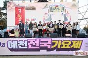 뉴스다 최광묵 기자 | 제10회 예천전국가요제가 2일 오후 2시,‘2025 예천활축제&농산물축제’ 특설무대에서 열렸다. (사)한국연예예술인총연합회예천지회(지회장 채희삼)의 주관으로 진행되는 이번 대회에는 전국에서 엄선된 본선 12팀이 출연하여 열띤 경연을 펼쳤다. 예천전국가요제는 지역 문화예술 발전과 대중음악 활성화를 위해 꾸준히 이어져 온 행사로 예천색소폰동호회의 식전공연을 시작으로 본선 진출자 12팀과 강민주, 통일메아리악단, 인댄스 무용단 등의 초청공연이 펼쳐졌다. 시상식에서는 400만 원의 상금이 걸린 대상은 문정옥 씨(대구) 금상은 유소라 씨(충주)가 수상했으며, 은상은 장혜진 씨(문경), 동상은 강나은 씨(서울), 가창상은 김정희 씨(영주), 인기상은 최우혁 씨(대구)에게 각각 수여됐다. 수상자들에게는 수상의 영예와 함께 많은 격려가 전해졌다. 김학동 군수는 “지역문화 활성화와 주민 화합의 장을 마련해 가고 전국가요제가 더욱 발전하여 예천을 대표하는 문화예술축제로 자리매김하기를 바란다”고 전했다.