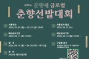[20260202112252-88250]뉴스다 최광묵 기자 | 남원시는 제96회 춘향제를 맞아 ‘글로벌 춘향선발대회’ 참가자를 2월 2일부터 3월 27일까지 모집한다. 글로벌 춘향선발대회는 춘향의 가치와 정신을 세계에 알리고, 국적과 언어, 문화의 경계를 넘어 현대적 감각으로 재해석한 춘향의 매력을 선보이기 위해 마련된 춘향제 대표 프로그램이다. 특히 제96회 춘향제에서는 ‘춘향의 멋, 세계를 매혹시키다’를 주제로 글로벌 문화 아이콘으로서의 춘향을 조명하고, 참가 대상과 무대를 국제적으로 확대한다. 이번 대회는 단순한 선발을 넘어 문화 교류형 콘텐츠로 운영해 지역 축제를 넘어 세계인이 함께하는 글로벌 문화 플랫폼으로 도약할 계획이다. 참가 자격은 대한민국 국적자뿐만 아니라 해외 국적자도 지원 가능하며, 자세한 모집 요강은 남원시 누리집과 춘향제 공식 홈페이지에서 확인할 수 있다. 대회에서는 전통적 아름다움은 물론 춘향의 정신과 가치에 대한 이해, 글로벌 감각과 소통 역량 등을 종합적으로 평가할 예정이다. 서류심사와 예선심사를 거쳐 선발된 본선 진출자는 4월 30일 열리는