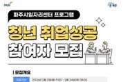 뉴스다 최광묵 기자 | 파주시는 취업을 준비 중인 청년을 대상으로 맞춤형 취업지원 프로그램인 ‘청년 취업성공 프로그램’참여자를 모집한다. 이번 프로그램은 청년들의 취업 역량 강화를 목표로, 자기이해부터 직무분석, 자기소개서 작성, 실무면접 대비까지 취업 준비 전 과정을 체계적으로 지원하는 실전 중심의 취업지원 과정으로 구성됐다. 모집 기간은 2월 2일부터 2월 24일까지이며, 교육은 3월 4일부터 3월 5일까지 파주시 일자리센터에서 집합교육으로 진행된다. 이후 3월 6일부터 4월 10일까지는 참여자별 취업 준비 상황에 맞춘 1:1 맞춤 지도가 운영될 예정이다. 교육 대상은 파주시에 거주하는 청년 구직자와 관내 대학 및 특성화고 재학생이다. 주요 교육 내용은 ▲자기탐색 및 최신 취업 경향 이해 ▲자기소개서 심화 작성 ▲취업 수요 파악 및 목표 설정 ▲기업·직종·직무 분석 ▲실무 면접 대비 등으로 구성됐다. 특히 1:1 지도 기간에는 전문 지도자(멘토)가 참여자의 진로 방향과 취업 준비도를 종합적으로 진단해 개인별 맞춤 자문을 제공함으로써 실질적인 취업 경쟁력 향상을 지원할 계획이다. 이이구 민생경