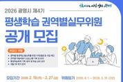 뉴스다 최광묵 기자 | 광명시가 시민 주도의 생활권 중심 평생학습 정책을 강화하기 위해 ‘제4기 평생학습 권역별실무위원회’ 신규 위원 100명을 공개 모집한다. 평생학습 권역별실무위원회는 마을 단위의 학습 의제를 발굴하고 현장 맞춤형 프로그램을 기획·운영하는 민관 협력 기구다. 위원회는 ▲으뜸터(광명1~3동) ▲다울마을(광명4~7동) ▲철산지기(철산1~4동) ▲하안처럼(하안1~4동) ▲예터지기(소하·일직·학온동) 등 5개 권역으로 구성된다. 지원 자격은 광명시에 주민등록이 되어 있는 만 19세 이상 시민이라면 누구나 가능하며, 해당 권역 소재 사업장이나 기관·단체 근무자도 신청할 수 있다. 선발된 위원은 4월 1일부터 2년간 ▲마을 평생학습 의제 발굴 및 사업 제안 ▲마을배움터 프로그램 기획 및 운영 ▲평생학습축제 기획·참여 등 지역 학습 생태계 조성을 위한 핵심 역할을 수행하게 된다. 모집 기간은 오는 2월 19일부터 2월 27일까지다. 접수는 이메일 또는 광명시 평생학습원 방문을 통해 가능하다. 시는 3월 중 서류심사와 면접을 거쳐 최종 위원을 선발하고, 3월 말 위