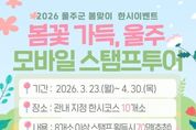 뉴스다 최광묵 기자 | 울산 울주군이 봄을 맞아 오는 23일부터 다음달 30일까지 한시 관광이벤트를 진행한다고 20일 밝혔다. 이번 한시 이벤트는 다양한 연계 이벤트로 울주군 방문 관광객의 참여도와 만족도를 높이고, 체류시간과 지역소비를 확대하기 위해 마련됐다. 올해 새롭게 리뉴얼된 K스탬프투어 모바일 앱을 이용한 ‘봄꽃 가득, 울주’ 이벤트와 ‘울주와봄’ SNS 여행후기 인증 이벤트 등으로 구성됐다. ‘봄꽃 가득, 울주’ 이벤트는 울주군 내 지정 봄꽃 명소 10개소 중 8개소 이상을 방문해 스탬프를 획득한 뒤 선물을 신청하면 된다. 주요 코스는 울주군 벚꽃 명소인 △작천정 벚꽃길 △서생포왜성 △두서면 차리마을 벚꽃길 △회야강변 벚꽃길 등이다. 울주군은 이벤트 참여자 중 추첨을 거쳐 총 70명을 선정해 울주특산품을 제공한다. ‘울주와봄’ SNS 여행후기 인증 이벤트는 ‘봄꽃 가득, 울주’ 이벤트 코스 중 1개소의 사진과 울주군 숙박시설, 식당, 카페 중 1개소 영수증을 첨부해 개인 SNS(인스타그램)에 게시하면 된다. 여행후기 작성자 중 70명을 추첨해 울주
