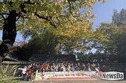 뉴스다 최광묵 기자 | 지난 31일 광교노인복지관에서 (사)대한노인회 수원시 영통구지회 광교노인대학 졸업식이 개최됐다. 광교노인대학은 지난 3월 28일 입학식을 시작으로 10월 31일까지 약 24주 동안 노인지도자 자세, 건강관리, 교양과목 등의 교육내용으로 진행됐으며 이날 34명의 졸업생을 배출했다. 졸업식은 송준호 광교노인대학장의 졸업증서 수여와 공로상, 모범상 등의 상장 수여 등 한시간여 동안 진행됐다. 배움에 대한 설렘과 열정으로 시작했던 2014년 1기 광교노인대학은 올해 10기 졸업식을 맞이했다. 그동안 노인대학에 참여하신 어르신들은 인생의 황혼기에 동기들과 함께 추억을 나누고 배움을 통해 행복한 노년의 청춘을 만끽했다. 이날 졸업식에 참석한 장수석 영통구청장은 “오늘 졸업하신 어르신들의 도전과 열정에 깊은 존경을 보냅니다. 앞으로도 어르신들이 건강하고 행복한 노후를 보내실 수 있도록 평생학습과 복지 지원을 강화해 나가겠다”며 다시 한번 졸업식을 축하했다. 김열경 대한노인회 수원시 영통구 지회장은“항상 영통구 노인복지를 위해 힘써주시는 장수석 구청장에게 감사드리며 함께 영통구 발전을