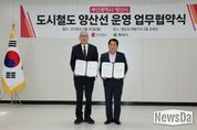 뉴스다 최광묵 기자 | 양산시는 30일 오후 2시 양산선 차량기지 내에서 부산광역시와 ‘양산선 운영 업무협약’을 체결하고 도시철도 운영 협력체계 구축에 나섰다고 밝혔다. 이번 협약은 부산도시철도 1호선 노포역과 2호선 양산중앙역의 직접 연결을 통해 환승체계를 구축하고, 양산선 도시철도의 안정적인 운영과 시민 교통편의 증진을 위해 마련됐다. 이를 위해 부산광역시와 양산시는 도시철도 운영에 대한 역할을 분담하고 상호 협력하기로 했다. 협약식에는 박형준 부산광역시장과 나동연 양산시장을 비롯한 양 기관 관계자들이 참석한 가운데 진행됐다. 협약에 따라 양산선 본선 구간은 양산시가 담당하고, 부산도시철도 2호선 연결 구간은 부산광역시가 담당하게 된다. 또 양 기관은 도시철도 운영과 관련된 정보 공유와 안전관리, 이용객 편의 증진을 위한 협력체계를 구축해 나갈 계획이다. 양산선은 개통 이후 부산과 양산을 연결하는 중요한 광역교통 수단으로 역할을 할 것으로 기대되고 있다. 특히 이번 협약은 시민의 교통편의를 최우선으로 두고 두 지자체가 협력과 상호 양보를 통해 운영 방안을 마련했다는 점에서 의미 있는 행정 협