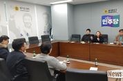 뉴스다 최광묵 기자 | 경기도의회 더불어민주당(대표의원 최종현, 수원7)은 지난 23일 교섭단체 회의실에서 경기도약사회와 신년인사를 겸한 간담회를 열고 더불어민주당 신규 정책사업 등 주요 현안 추진 상황을 공유했다. 이번 간담회는 새해를 맞아 보건의료 현장의 목소리를 직접 듣고, 올해 교육청 예산에 신규 반영된 정책사업의 방향을 논의하기 위해 마련됐다. 특히 더불어민주당 제안으로 추진되는 ‘경기학교교의·약사’ 지원사업을 중심으로 심도 있는 논의가 이어졌다. 이날 간담회에는 이진형 의원(화성7)을 비롯해 경기도의회 더불어민주당 장한별 총괄수석(수원4), 전자영 수석대변인(용인4), 경기도약사회 연제덕 회장, 김성남 부회장, 유현주 의약품안전사용위원장 등 관계자들이 참석했다. 참석자들은 학교 현장에서 학생 건강을 체계적으로 관리할 수 있는 정책 필요성에 공감하며, 사업 추진 과정에서의 협력 방안을 폭넓게 논의했다. 경기학교교의·약사 지원사업은 8억 원의 예산으로 약사 등 지역 보건의료 인력과 학교를 연계해 학생 건강교육, 응급처치 및 질병 예방 자문 등을 제공하는 신규 정책사업이다. &