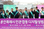 뉴스다 최광묵 기자 | 용인특례시는 27일 수지구청역 일대에서 민·관 합동 ‘디지털 성범죄 근절 캠페인’을 진행했다고 밝혔다. 시는 ‘불법촬영 OUT, 일상안전 ON! 민·관이 함께 만드는 안전한 용인’을 슬로건으로 시민들의 경각심을 높이고 예방 문화를 확산하기 위해 이번 캠페인을 마련했다. 캠페인에는 이상일 시장을 비롯해 조영민 용인교육지원청 교육장, 배영찬 용인동부경찰서장, 오은석 용인서부소방서장 등 주요 기관장이 참석해 디지털 성범죄 예방과 근절을 위한 기관 간 협력 의지를 다졌다. 또한, 용인시청소년미래재단, (사)경기도여성단체협의회 용인시지회, 용인성폭력상담소, 여성친화도시 시민참여단 등 15개 기관·단체 관계자 300여 명이 함께 했다. 이상일 시장은 인사말에서 “디지털 성범죄는 갈수록 심각해지고 있으며, 예상치 못한 호기심에서 시작된 행동이 큰 처벌로 이어지는 사례도 적지 않다”며 “이번 캠페인을 통해 시민들의 경각심을 높이고 예방 문화를 확산하는 것이 무엇보다 중요하다”고 말했다. 이 시장은 “시는 공중화장실과 어린이집 등 생활 공간에 불안 요인이 없는지 점검하고, 시