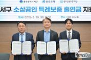 뉴스다 최광묵 기자 | 광주은행은 30일, 광주광역시 서구청에서 김이강 광주광역시 서구청장, 강지훈 광주은행 부행장, 염규송 광주신용보증재단 이사장 및 관계자가 참석한 가운데 ‘서구 소상공인 특례보증 업무협약’을 체결했다고 밝혔다. 경기침체 장기화로 지역경제의 어려움이 가중되는 가운데, 광주은행은 이번 협약을 통해 서구 소상공인에 대한 금융지원을 확대하기 위해 1억 5천만 원을 별도로 출연한다. 해당 출연금을 재원으로 광주신용보증재단은 총 42억 원 규모의 특례보증을 공급하고, 광주광역시 서구는 1년간 최대 5.0%(고신용자 4.0%, 중저신용자 5.0%)의 이차보전을 지원해 소상공인의 금융 부담을 완화할 계획이다. 지원 대상은 광주광역시 서구에서 사업을 영위 중인 소상공인이며, 대출 한도는 업체당 최대 2천만 원, 대출 기간은 최장 5년이다. 한편, 광주은행은 서구 소상공인 지원을 위해 지난 2021년부터 총 7억 5천만 원을 특별출연해 총 251억 원 규모의 특례보증을 지원한 바 있다. 강지훈 부행장은 “이번 특례보증이 자금의 어려움을 겪는 소상공인들에게 작은 숨통이 되고, 다시