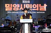 뉴스다 최광묵 기자 | 경남 밀양시는 삼문동 야외공연장 일원에서 시민과 방문객 등 10,000여 명이 참석한 가운데 제30회 밀양 시민의 날 기념식 및 시민 한마당 축제를 성황리에 마무리했다고 18일 밝혔다. 이번 행사는 국제와이즈멘 밀양클럽이 주관해 읍·면·동 거리 퍼레이드를 시작으로 기념식, 시민 한마당 축제, 열린음악회, 불꽃놀이까지 다채로운 프로그램이 이어지며 시민의 자긍심과 화합을 다지는 축제의 장이 됐다. 기념식은 미래 세대의 주역인 밀양 청소년을 대표해 밀성고등학교 박해수·황윤준 학생의 시민헌장 낭독으로 시작됐으며, 제27회 밀양 시민대상은 문화 부문 김은민 극단메들리 대표, 산업 부문 조문수 한국카본 대표이사, 봉사 부문 손흥상 해심장학재단 이사장이 수상의 영예를 안았다. 또한 시군 통합 및 지방자치 30주년 기념 퍼포먼스를 통해 지난 30년간 밀양의 발전 여정을 되돌아보고, 눈부신 성장과 변화를 시민 모두가 함께 축하하는 뜻깊은 시간을 가졌다. 이후 열린 시민 한마당 축제에서는 국내 최고 수준의 밀양아리랑오케스트라의 연주와 가수 이기찬, 소프라노 심규연의 무대가 이어져 감동과 열