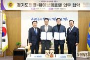뉴스다 최광묵 기자 | 경기도의회는 4일 오후 의장 접견실에서 시흥 소재 웨이브엠 호텔(대표 천수봉)과 ‘도의원 및 직원 복지 증진과 지역 내 관광·숙박업 활성화를 위한 업무협약’을 체결했다. 이번 협약은 도의회 구성원의 복지 수준을 높이는 동시에, 지역 내 숙박·관광 산업의 경쟁력 강화와 상생 협력 기반을 마련하기 위해 추진됐다. 업무협약식에는 김진경 의장(더민주·시흥3)과 김종배 의원, 임채호 의회사무처장 및 웨이브엠 호텔 대표 등이 참석했다. 이날 양 기관은 ▲객실 및 부대업장 이용 시 할인 제공(객실 20% 할인 등) ▲조식 할인 및 객실 이용 시 1인 조식 무료 제공 ▲행사 개최 등 다양한 분야에서의 상호 협력 추진 등에 대한 업무협약을 체결했다. 김진경 의장은 “이번 협약을 통해 도의원과 직원들은 좋은 시설을 편리하게 이용할 수 있게 되고, 동시에 지역 관광 및 숙박 산업에도 의미 있는 보탬이 될 것”이라며 “경기도의회와 지역 기업이 서로 신뢰를 쌓고 협력의 폭을 넓힌다는 점에서 협약의 의미가 크다”라고 기대했다. 이어 “오늘의 협약이 단순한 혜택 제공을 넘어 지역 경제