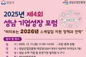 뉴스다 최광묵 기자 | 성남산업진흥원은 '2026년 스케일업 지원 정책'을 주제로 오는 12월 11일 11시 30분부터 2025년 제4회 '성남기업성장포럼'을 개최한다. ‘성남기업성장포럼’은 2024년 9월 첫 포럼 개최 이후, 매회마다 참석자가 증가하여, 지난 10월 제3회 포럼에는 170여명의 기업 임직원과 10여개 기업지원기관이 참여하는 등 성남시 기업 성장을 위한 대표 네트워크로 성장하고 있다. 성남시 소재 기업 임직원은 누구나 포럼 참석이 가능하며, 성남산업진흥원 홈페이지를 통해 참석 신청을 할 수 있다. 이번 포럼에서는 '기업지원 미니설명회'에서 시니어 오너 기업의 엑시트(Exit) 전략에 대한 법무법인 지평의 발표에 이어 창업진흥원과 중소기업기술정보진흥원이 2026년 스케일업 지원방향과 주요 사업을 소개한다. 김윤정 창업진흥원 혁신사업화본부 본부장은 창업 초기단계와 성장단계 기업에 대한 내년도 지원 내용을 설명하고, 차인호 중소기업기술정보진흥원 사업총괄관리실 책임연구원은 중소기업 기술혁신(R&D)을 위한 주요 사업을 안내한다. 또한 성남시 소재 2개사가 자사의 기술과 비