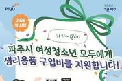 뉴스다 최광묵 기자 | 파주시는 여성청소년의 건강과 복지 향상을 위해 2026년 3월부터 11~18세 파주시 여성청소년 모두를 대상으로 생리용품 지원금을 지급한다. 지원 대상자는 파주시에 주민등록, 외국인등록, 국내거소 신고가 되어있는 11~18세의 여성청소년으로 월 14,000원씩 연 최대 168,000원의 생리용품 구입비를 모바일 지역화폐로 지급하며, 해당 지역화폐는 생리용품 구매 전용으로 사용이 제한된다. 온라인의 경우 3월 5일 14시부터 경기민원24에서 신청이 가능하며, 방문 신청은 3월 4일부터 주민등록상 주소지 행정복지센터에서 접수한다. 지원금은 신청 이후 자격 조건 검증을 통해 4월 20일부터 순차적으로 지급되며, 신청 자격 확인을 위해 최소 2주 이상의 검토 기간이 소요될 것으로 예상된다. 지원금은 파주시 지역화폐 가맹점으로 등록된 4개 편의점(지에스(GS)25, 시유(CU), 이마트24, 세븐일레븐)과 배달특급 앱의 생리용품 전용몰(온라인)에서 사용할 수 있으며 해당 사용처에서 지원금 사용을 위해서는 경기지역화폐 앱 설치 및 가입이 필수인 점에 유의가 필요하다. 김지숙 청년청소