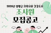 뉴스다 최광묵 기자 | 양평군은 질병관리청 및 양평군보건소와 공동으로 추진하는 ‘2026년 지역사회 건강조사’에 참여할 조사원 6명을 모집한다고 밝혔다. 지역사회 건강조사는 지역 주민의 건강 수준과 생활 습관, 만성질환 현황 등을 파악해 지역 특성에 맞는 보건 정책 수립의 기초 자료로 활용하기 위해 매년 실시되는 국가승인통계다. 이번 조사는 5월 16일부터 7월 31일까지 약 2개월 반 동안 진행되며, 조사 진행 상황에 따라 종료일은 변경될 수 있다. 모집 분야는 ‘2026년 지역사회 건강조사 조사원’으로, 근무 지역은 양평군 관내이며 모집 인원은 총 6명이다. 선발된 조사원은 조사 수행에 앞서 표본지점 확인을 위한 사전 조사를 실시하고, 조사 대상 가구로 선정된 표본가구를 직접 방문해 19세 이상 성인을 대상으로 스마트 기기(태블릿 PC)를 활용한 1대1 면접 조사를 수행하게 된다. 전형은 1차 서류 전형과 2차 면접 전형으로 진행된다. 군은 서류 전형에서 응시자의 자격 및 경력의 적합 여부를 심사하며, 1차 합격자를 대상으로 면접 전형을 실시한다. 원서 접수 기간은 3월 5일부터 13일까지이
