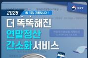 뉴스다 최광묵 기자 | 더 똑똑해진 연말정산 간소화 서비스 2026년 1월 15일 개통합니다! ■ 더~욱 새로워진 연말정산 간소화 서비스 기존 42개 자료+ 3개 자료 추가 1. 발달 재활 서비스 이용 증명 2. 장애인 활동 지원 급여 본인 부담금 자료 3. 체육시설 이용료 자료 ■ 더~욱 정교해진 소득 기준 초과 부양가족 명단 제공 소득 금액 100만 원 초과 부양가족에 대한 정보 연말정산 간소화 서비스 자료 조회 화면에서 안내 * 근로소득만 있는 경우 총급여 500만 원 - 소득 기준 초과 부양가족 내역 * 자세한 사항은 국세청 블로그를 참고해주세요! ■ AI 전화 챗봇 상담 - 국세 상담센터: ☎126→0번→0번(상담사 또는 AI 상담사 연결) - 세무서: 대표번호→2번→6번(AI 상담사 연결) (AI 상담사) · 주민등록번호 입력 후 본인인증 연말정산 간소화 자료 일괄 제공 현황, 부양가족의 간소화 자료 제공 동의 현황 등 · 생성형 AI 챗봇 상담 시범 운영 경로→홈택스 접속→홈택스 퀵메뉴→챗봇 상담 클릭 *홈택스 ■ 연말정산 유의